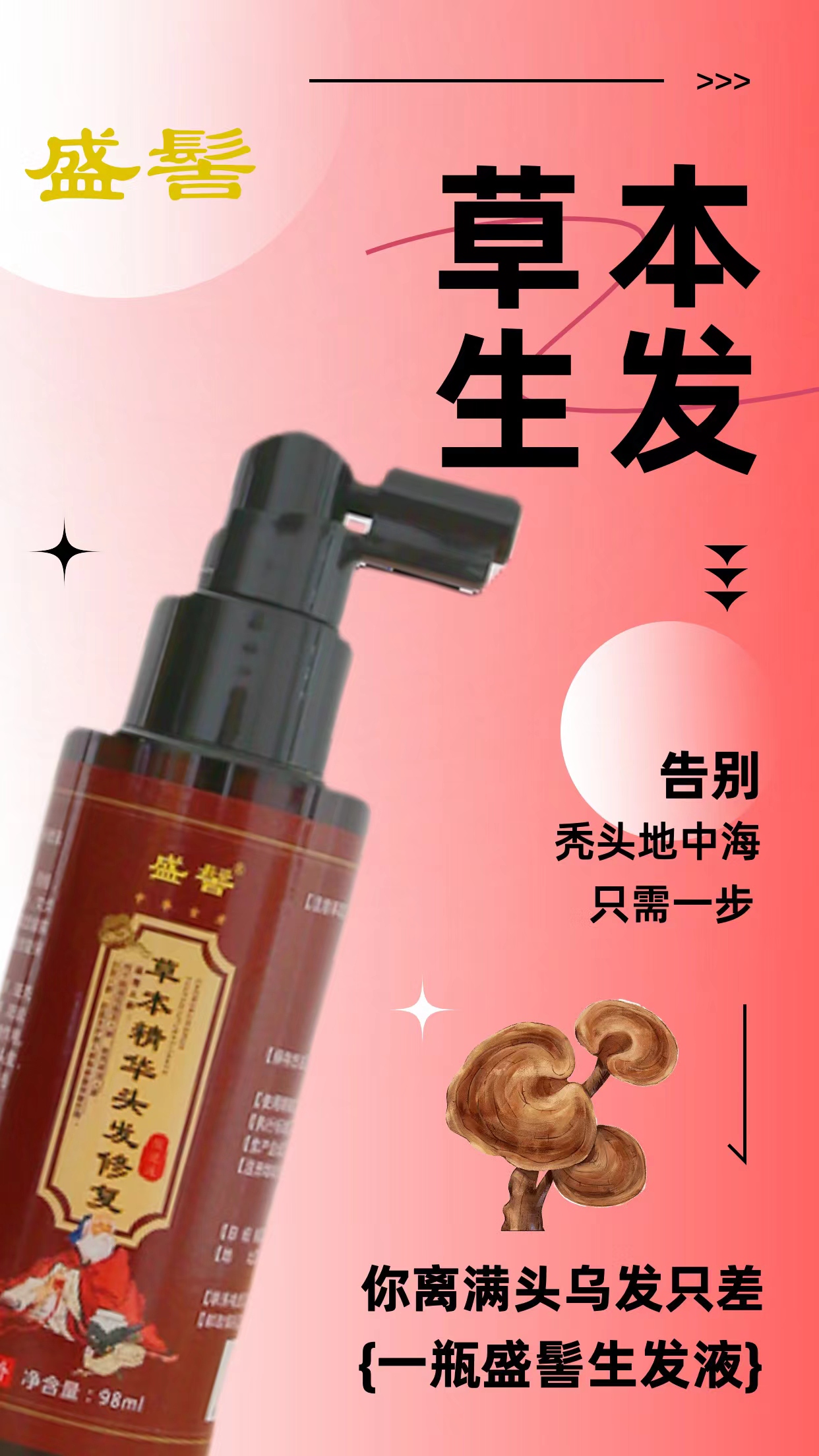 • 商品名称:盛髻-草本精华头发修复保健液(3瓶/套)