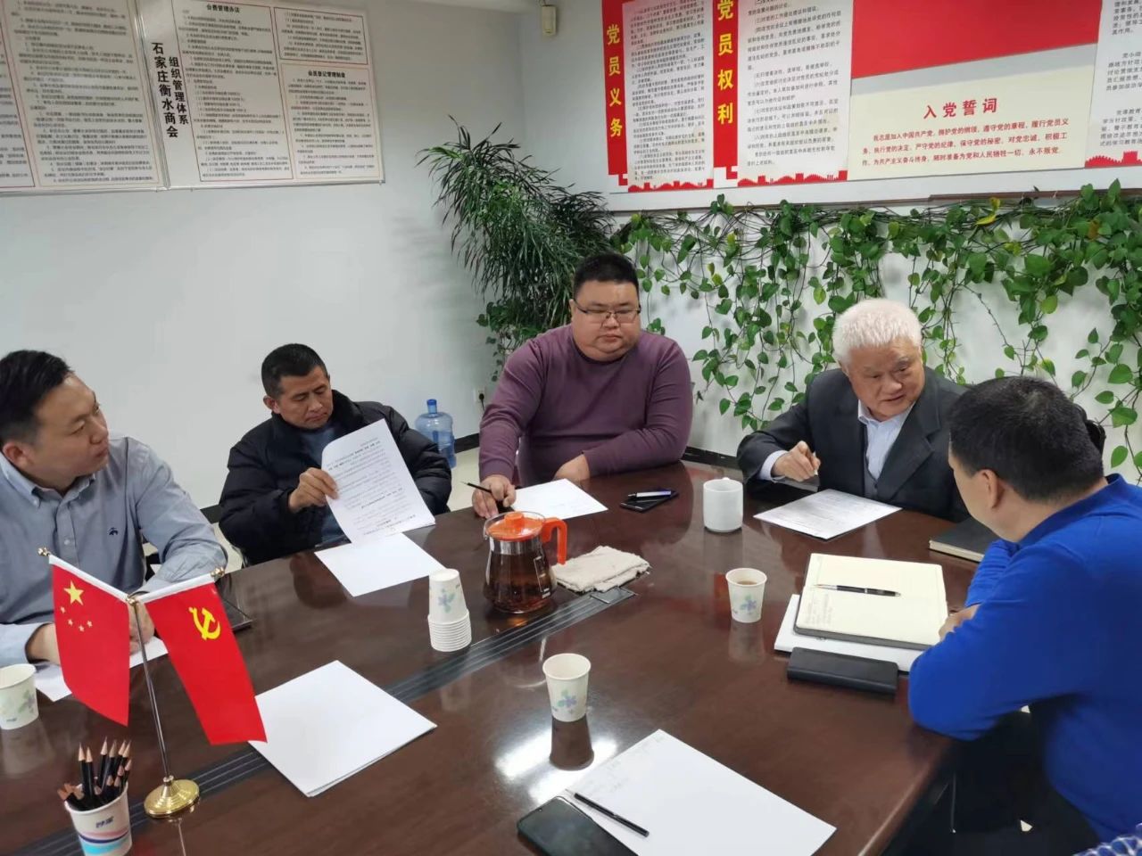 2024年1月17日,石家庄市衡水商会党支部,在商会党建办公室,召开党员大会,学习“三会一课”主题内容。